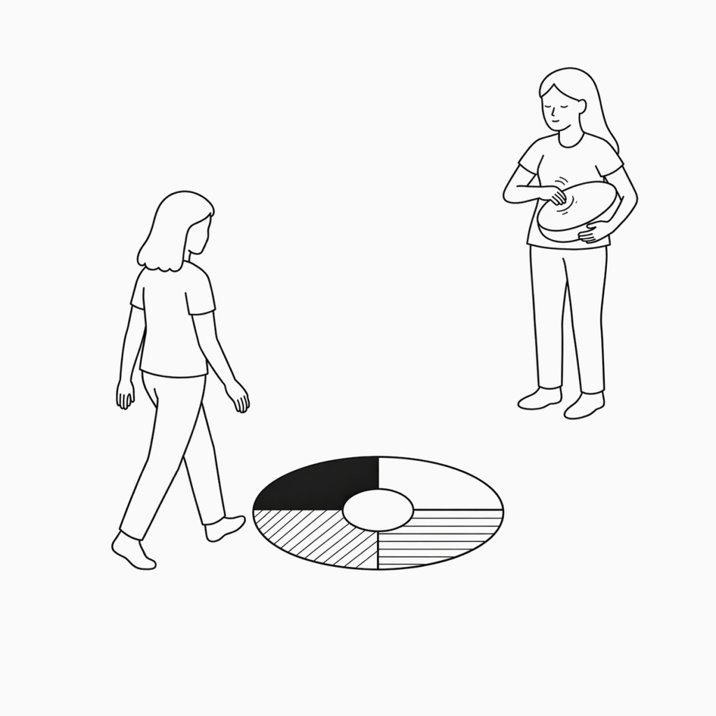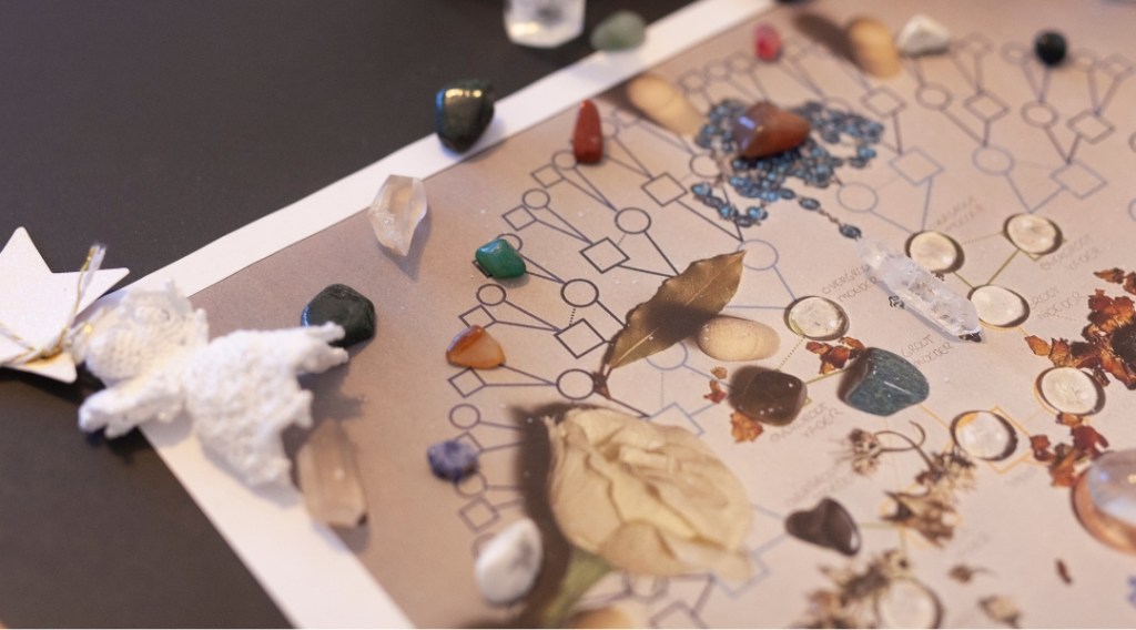 Een andere mogelijkheid is om een lijn te lopen van je huidige plek naar datgene waar je naar verlangt. Onderweg onderzoeken we welke blokkades je tegenkomt en welke hulpbronnen jou daarbij kunnen ondersteunen. Dat kunnen welwillende voorouders zijn, een krachtdier of een persoonlijk symbool.